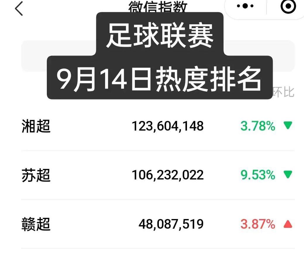中超太尴尬了!湘超已霸榜4天,热度继续压过苏超一筹,赣超第三